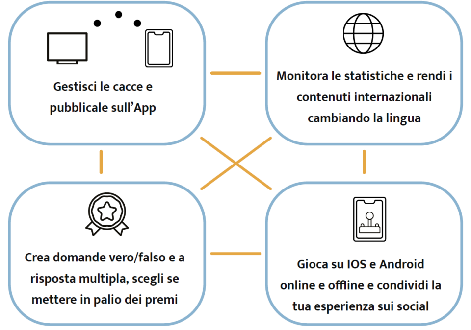 City Treasures è un’idea tecnologica originale: regala ai turisti una vacanza culturale alternativa e moderna, ai ragazzi un modo di imparare divertente e stimolante, ai cittadini occhi diversi per riscoprire e valorizzare la propria città. Un tour tecnologico di facile utilizzo più coinvolgente rispetto ai soliti percorsi turistici.